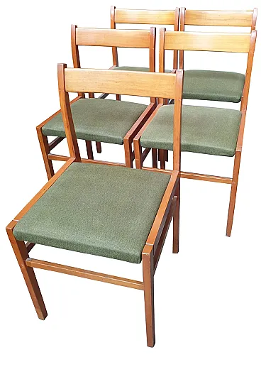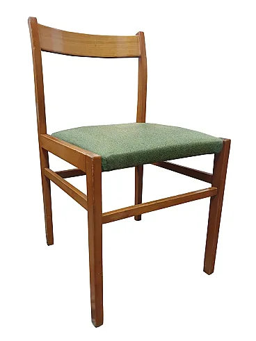 6 Sedie Mario Sabot in Faggio e Tessuto Verde, anni '50