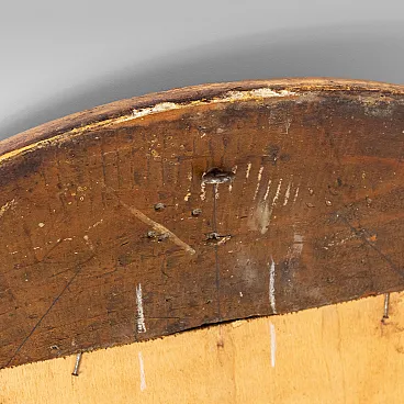 Il retro dello specchio è realizzato in legno massello, sottolineando ulteriormente la qualità e l'autenticità di questo pezzo antico. La sua forma ovale, un elemento di design classico, aggiunge un tocco morbido e aggraziato alla sua presenza complessiva.