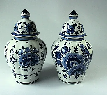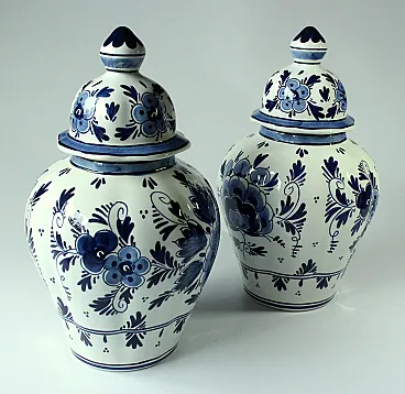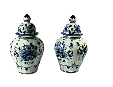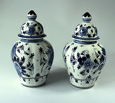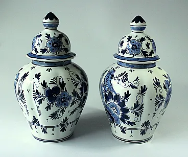 Coppia di 2 vasi Delft coperti, anni '70