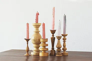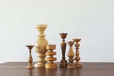 Questo set di portacandele scandinavi in legno è un perfetto esempio della semplicità e della bellezza naturale che caratterizzano il design scandinavo. Realizzati in legno, spesso di specie leggere come la quercia, il faggio o il pino, questi candelieri emanano calore e intimità, adattandosi perfettamente all'estetica minimalista del Nord. La loro forma è solitamente semplice e geometrica, il che li rende adatti a molti interni, sia moderni che tradizionali. Spesso sono progettati per esporre la struttura naturale del legno: le venature e la consistenza visibili conferiscono loro un carattere unico. Una caratteristica distintiva di questi portacandele è la loro capacità di creare un'atmosfera accogliente, soprattutto se abbinati alla calda luce delle candele. Il materiale ligneo si sposa perfettamente con il resto dell'arredamento scandinavo, che privilegia la semplicità, la funzionalità e la vicinanza alla natura. Questo set può essere un perfetto accento su un tavolo, una cassettiera o una mensola, portando un'atmosfera di pace e armonia all'interno. I candelieri scandinavi in legno, grazie alla loro forma universale, possono essere una decorazione discreta, che allo stesso tempo ha una funzione pratica. Conservati in condizioni originali. L'altezza dei candelieri varia da 25 a 13 cm - il diametro della base da 5 a 9 cm.