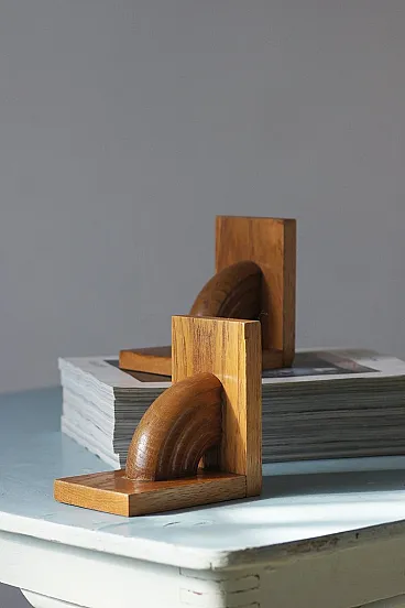 I poggia libri in legno sono un elemento decorativo elegante e funzionale che svolge un ruolo sia pratico che estetico in qualsiasi interno. Realizzato in legno massiccio e liscio, il set di supporti trasmette un'estetica senza tempo e di naturale bellezza I supporti per libri, con le loro forme geometriche combinano con enfasi forme morbide e arrotondate con linee rette coerenti per creare due oggetti decorativi. Decorazione interna di grande effetto, conservata in condizioni originali, con una patina delicata.