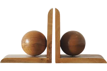 I poggia libri in legno sono un elemento decorativo elegante e funzionale che svolge un ruolo sia pratico che estetico in qualsiasi interno. Realizzato in legno massiccio e liscio, il set di supporti trasmette un'estetica senza tempo e di naturale bellezza I supporti per libri, con le loro forme geometriche combinano con enfasi forme morbide e arrotondate con linee rette coerenti per creare due oggetti decorativi. Decorazione interna di grande effetto, conservata in condizioni originali, con una patina delicata.