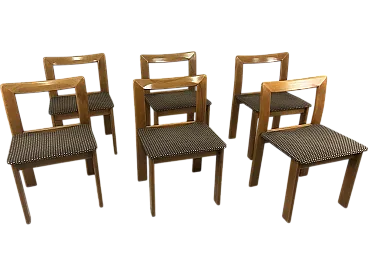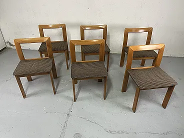 6 sedie in legno curvato e seduta in tessuto di Molteni, anni '70
