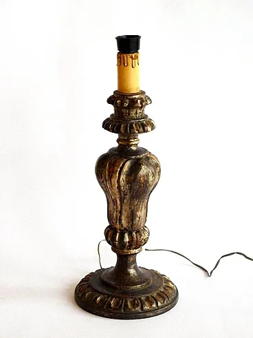 Lampada da tavolo in stile barocco in legno argentato, anni '50