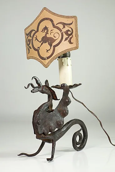 Lampada da tavolo Art Nouveau in ferro battuto, anni '50