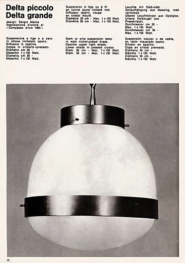 Lampadario Delta Grande di Sergio Mazza per Artemide, anni '60
