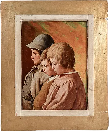 Ritratto di bambini, olio su tela, scuola italiana, '800
