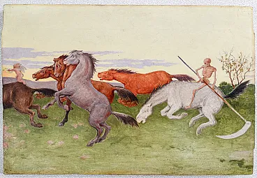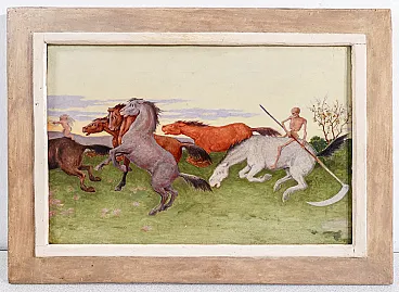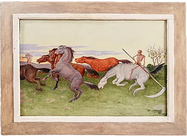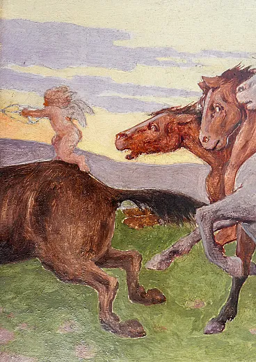 Cavalli e morte di Pasquale Rossi, olio su tela, fine '800