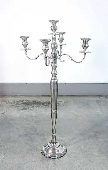 Candelabro da pavimento in metallo cromato, '900