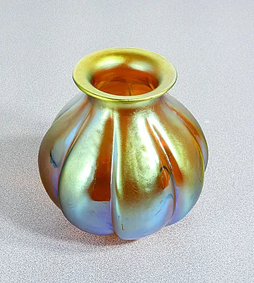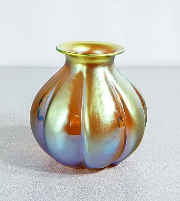 Vaso in vetro soffiato iridescente, primo '900