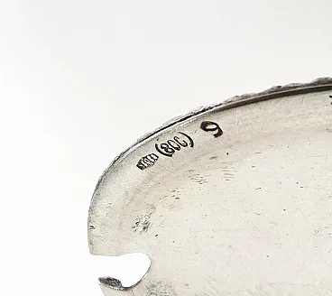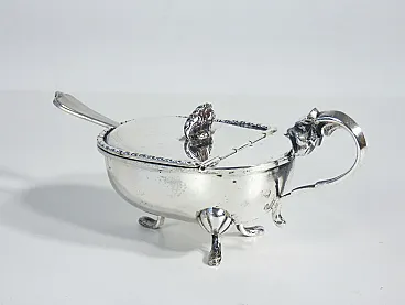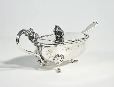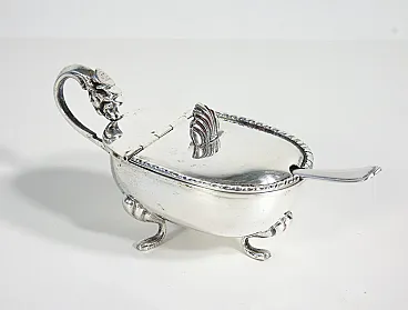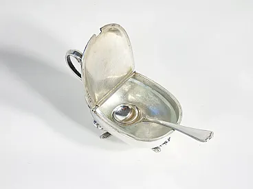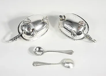 Saliera e pepiera da tavola in argento 800, con cucchiaini. I pezzi sono in condizioni molto buone, come è possibile constatare dalle foto allegate. Riportano normali tracce del tempo e di utilizzo visibili in foto.
