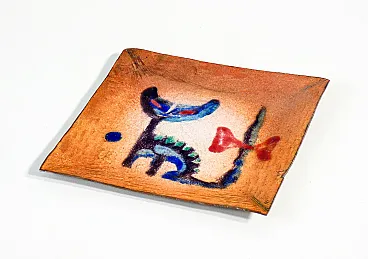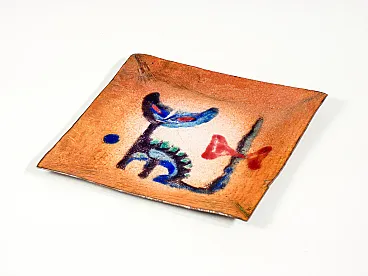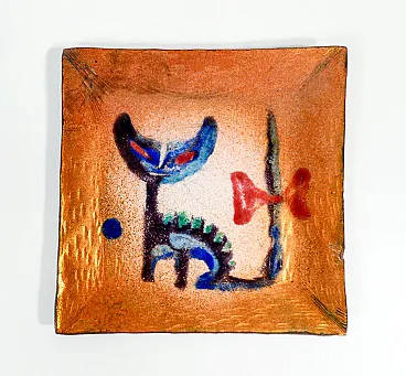 Piattino in rame e smalti policromi, anni '50