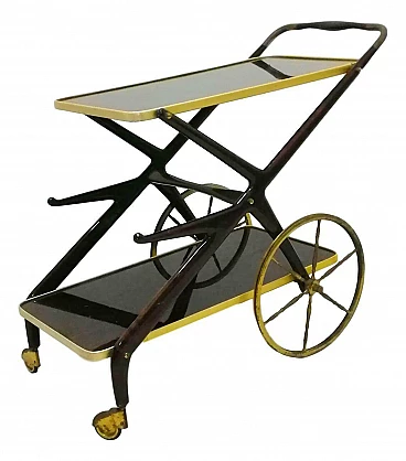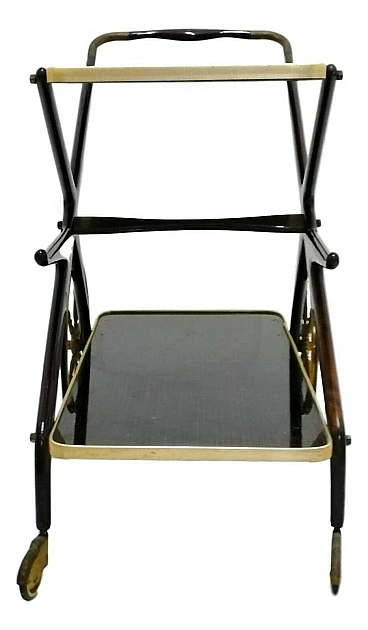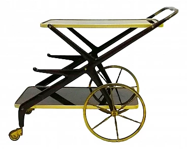 Carrello bar in ottone e legno di Cesare Lacca, anni '60