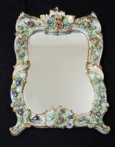 Specchiera in porcellana policroma di Capodimonte, primo '900