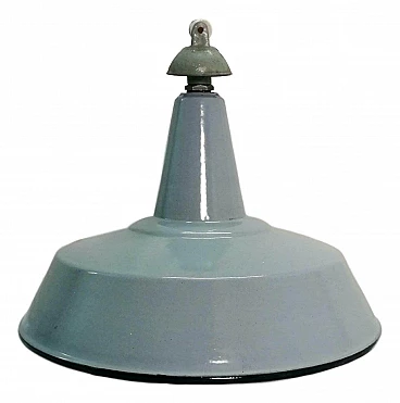 Lampada a sospensione originale Fontana Arte, modello "huna", produzione di fine anni 60, provenienza locali di aeroporto. Superficie smaltata color grigio, interno bianco, misura cm 35 di diametro per cm 30 di altezza. Condizioni molto buone, come da foto. 5 esemplari disponibili, il prezzo è relativo ad uno solo di essi.