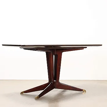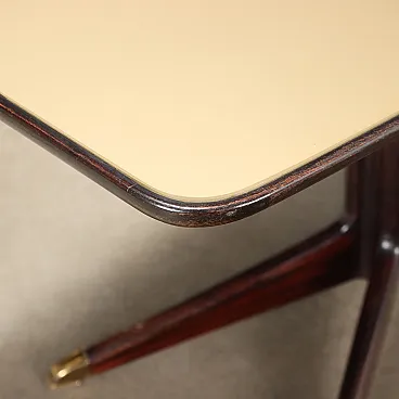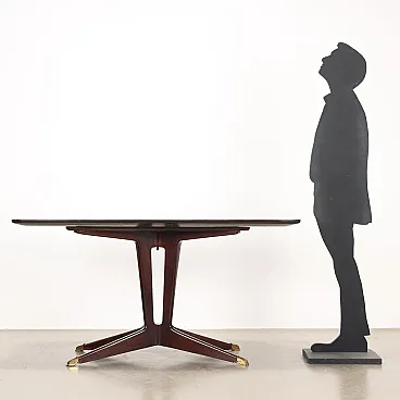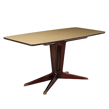 Tavolo da pranzo in legno, ottone e vetro, anni '50