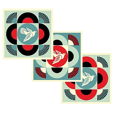 Shepard Fairey, GEOMETRIC DOVE SET, 3 litografie offset su carta, 2024