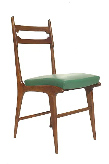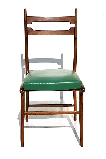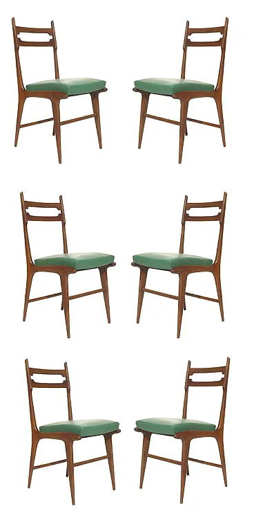 6 Sedie Mid-Century in legno e pelle, anni '50
