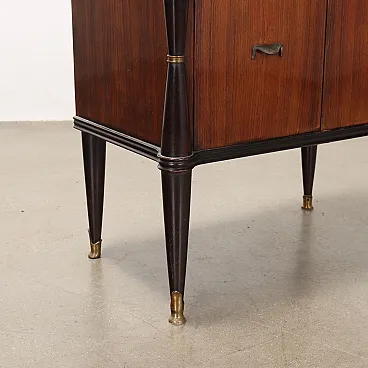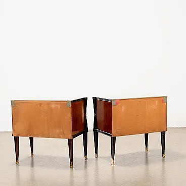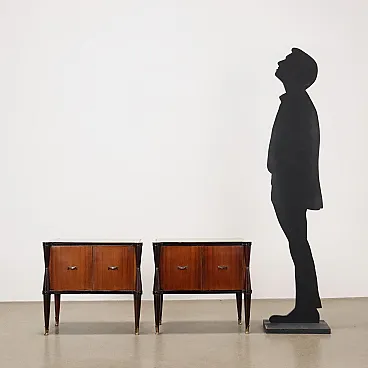 Coppia di comodini in legno, vetro e ottone, anni '50