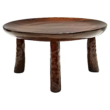 Brutalist Round Beech Coffee Table in the Style of Oscar Niemeyer, 70s