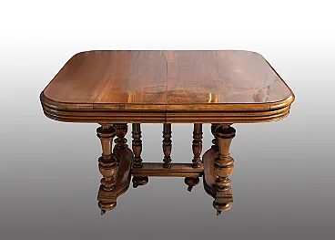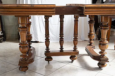 Tavolo antico allungabile Enrico II in massello di noce. Francia XIX s