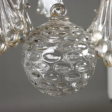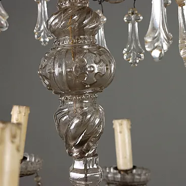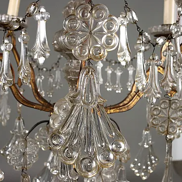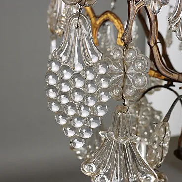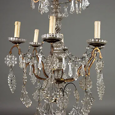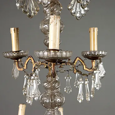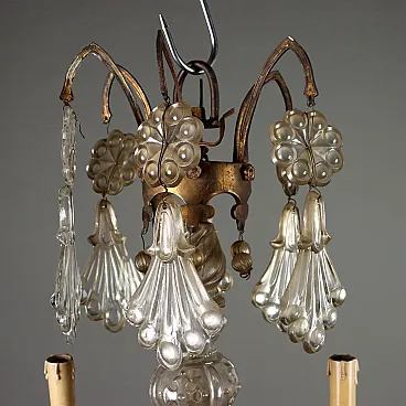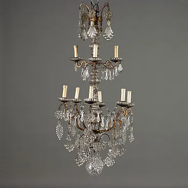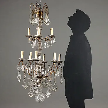 Lampadario in ferro dorato e vetro a 9 luci, '800