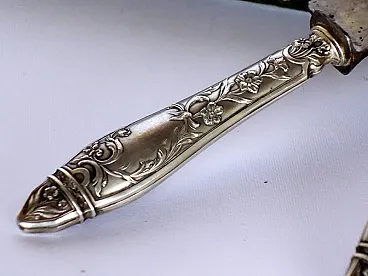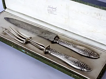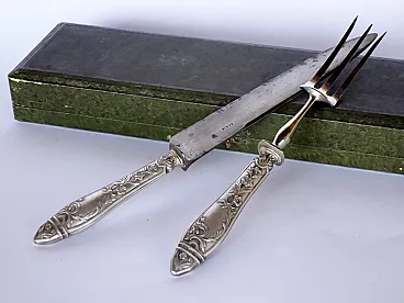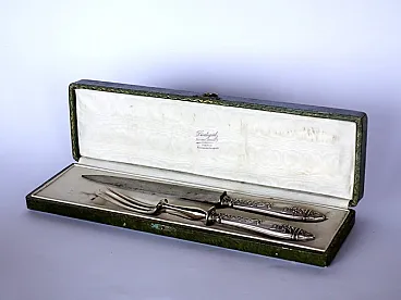Coppia di posate Art Nouveau in argento con scatola, fine '800