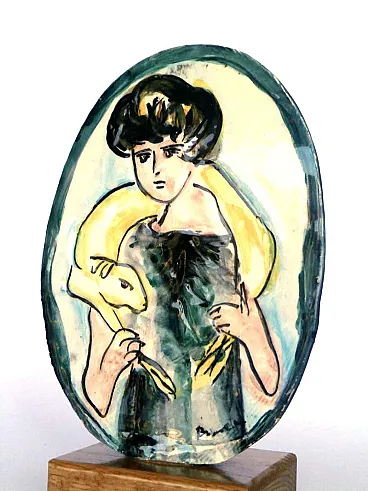 Remo Brindisi. Ceramiche Rossicone. 1980. Ceramica smaltata con base in legno. Base: 10x7 cm h23xw15 cm