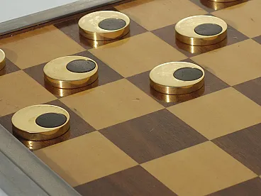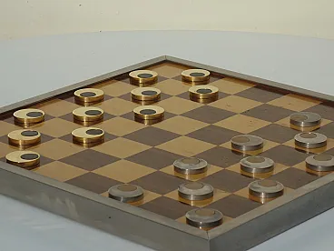 Tavolo da gioco in ottone e metallo cromato, anni '70