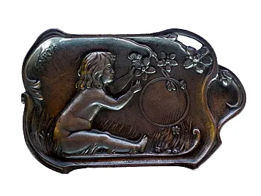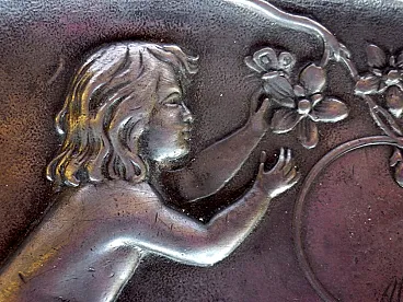Posacenere Art Nouveau in peltro o piatto con motivo bambino, inizio '900
