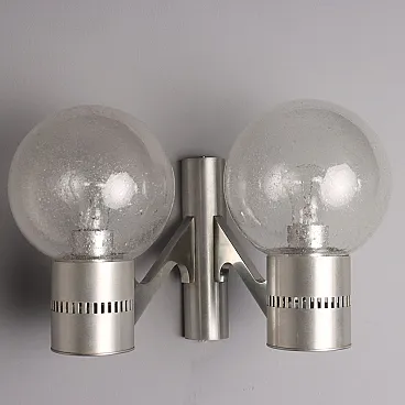 Lampada da parete in alluminio e vetro, anni '60