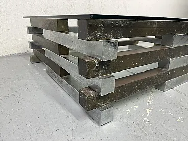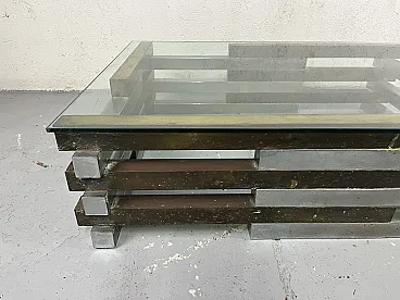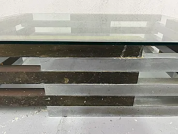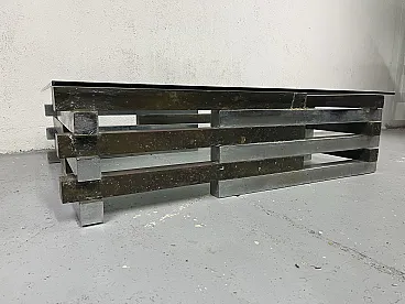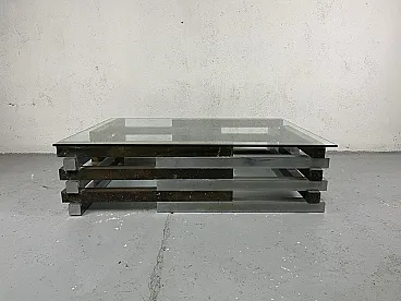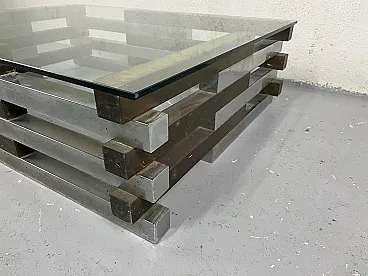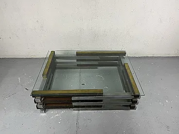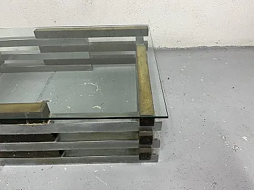 Tavolino da salotto in acciaio, ottone e vetro di Romeo Rega, anni '70