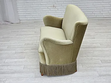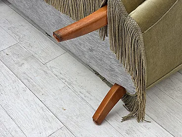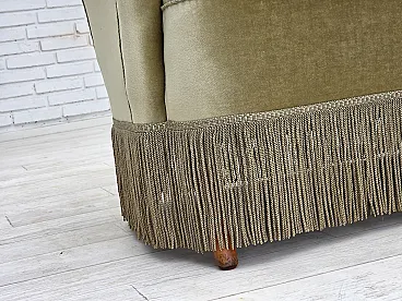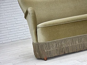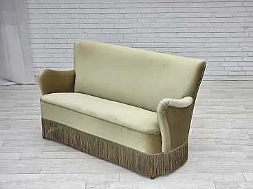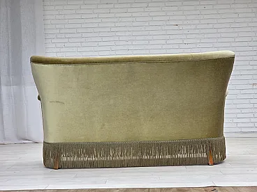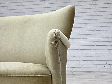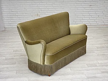 Divano danese a 2 posti, velluto verde, gambe in faggio, Anni '60