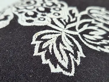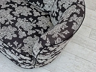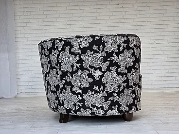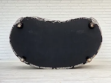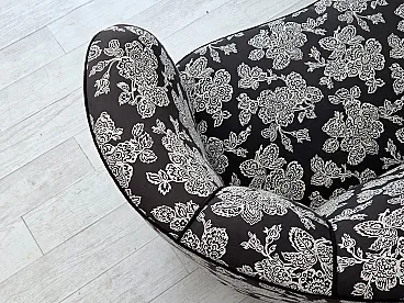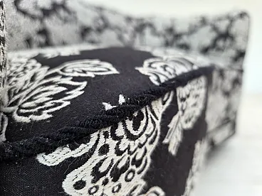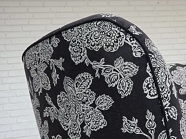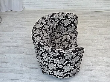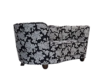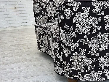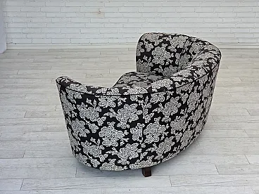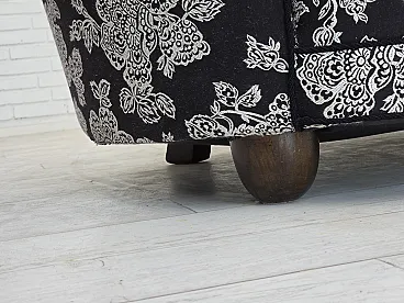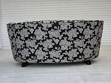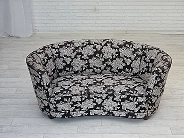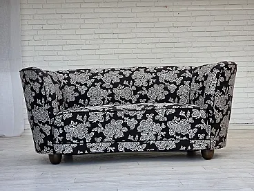 Anni '60, divano "banan" danese a 2 posti, tessuto nero-bianco, legno di faggio.