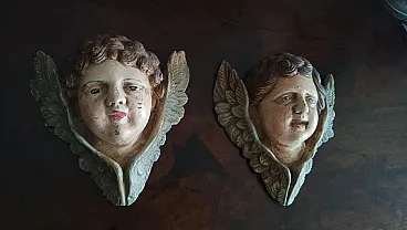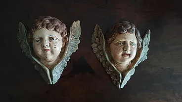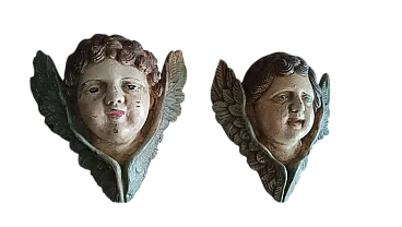 Coppia di volti d'angelo in gesso e legno policromo, fine '800