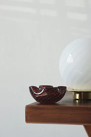 La ciotola/posacenere italiana di Murano in tecnica bullicante non è solo un oggetto utilitario, ma soprattutto un'opera d'arte in vetro artistico. La formatura a mano da parte dei maestri vetrai e l'abile tecnica ne fanno un oggetto originale di alto artigianato e qualità artistica L'intero pezzo è caratterizzato da linee fluide, che gli conferiscono leggerezza e snellezza. La forma e la tonalità unica del vetro gli conferiscono la capacità di catturare e riflettere la luce. Gli oggetti in vetro di Murano hanno spesso una funzione ornamentale, essendo simbolo di buon gusto e prestigio.