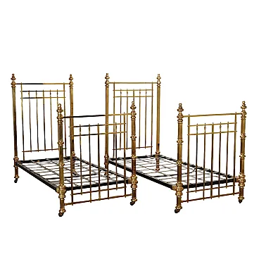 Coppia di letti in ferro, ottone e acero, '800