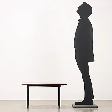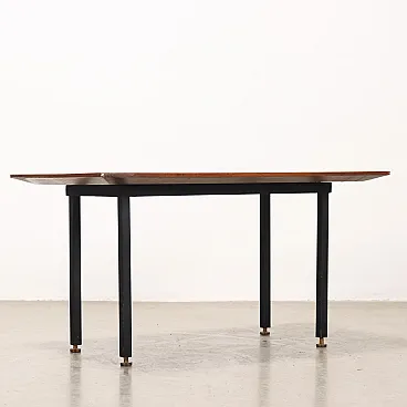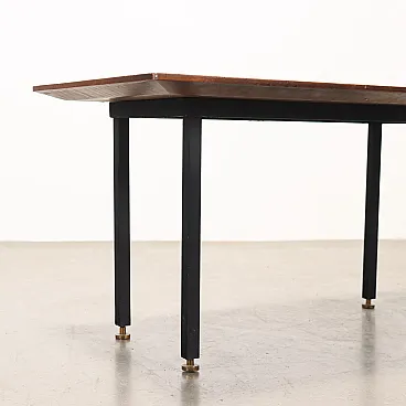 Tavolino in teak, metallo smaltato e ottone, anni '60
