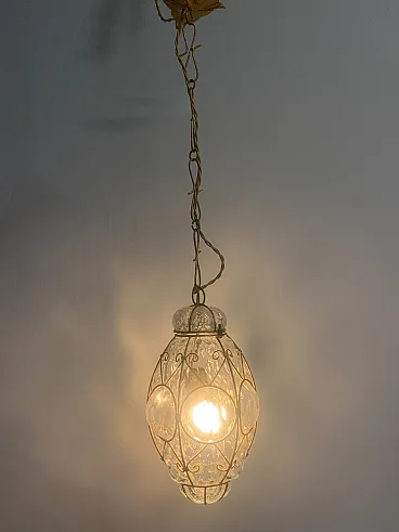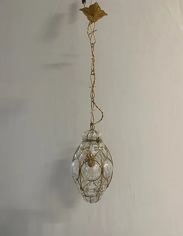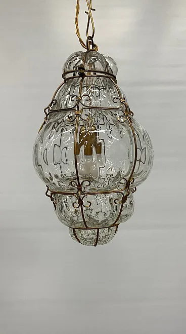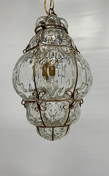 Lampadario lanterna in vetro di Murano attributo a A.V.E.M., anni '50