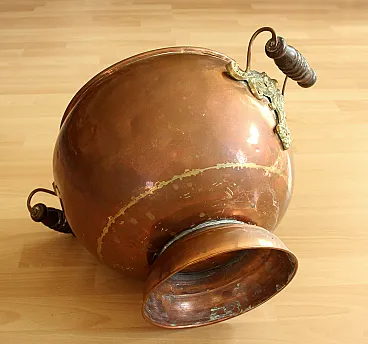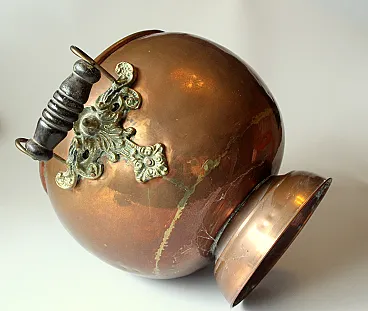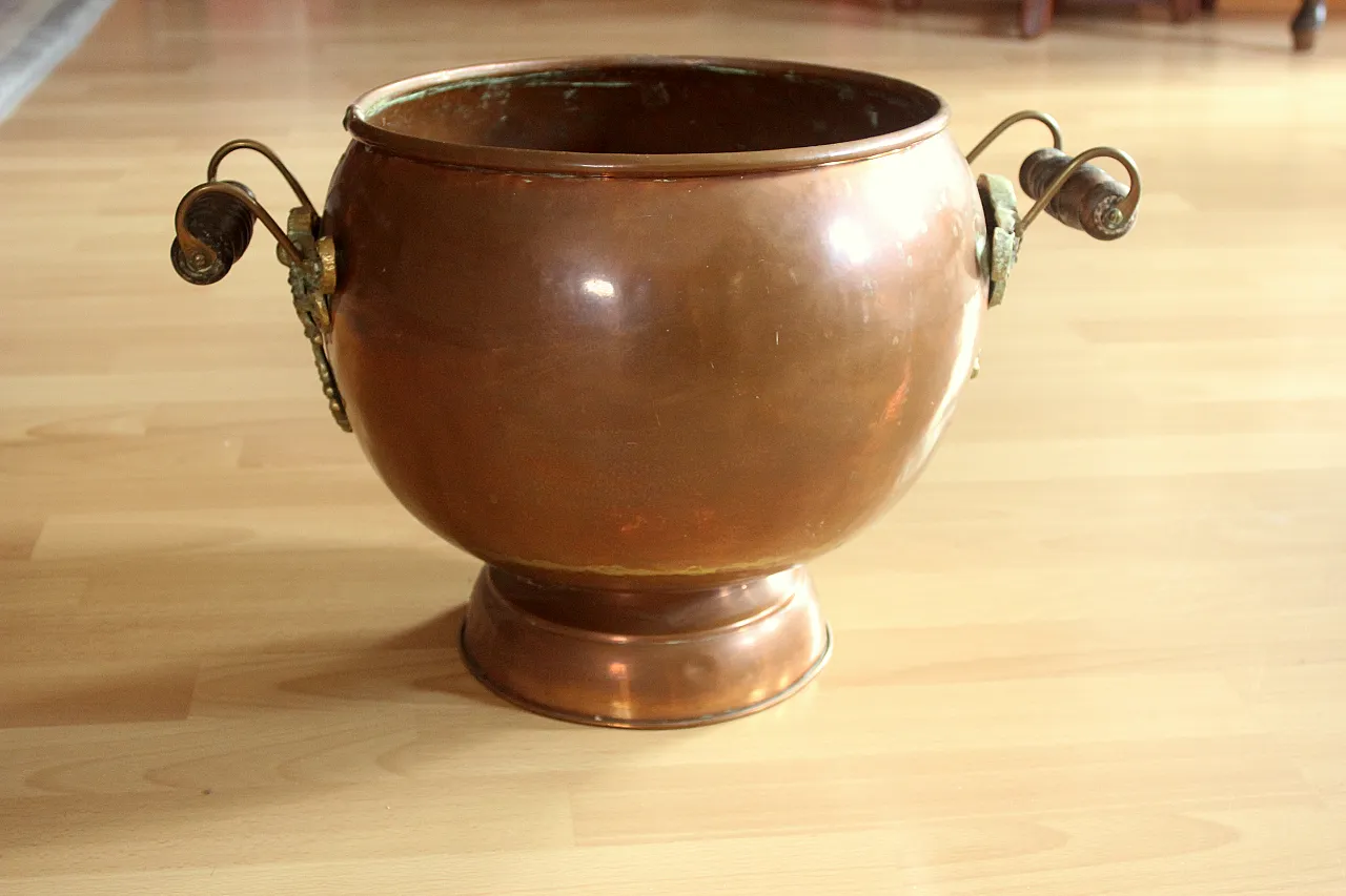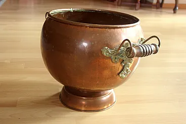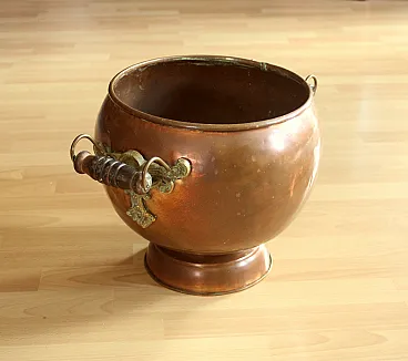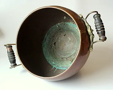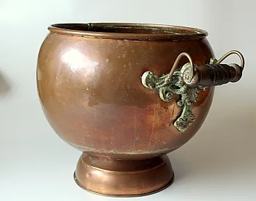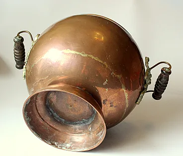 Grande fioriera in rame e ottone con manici in legno, 60s