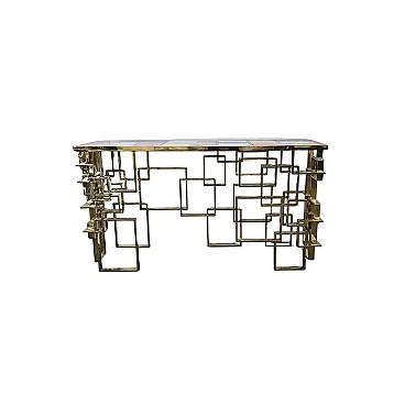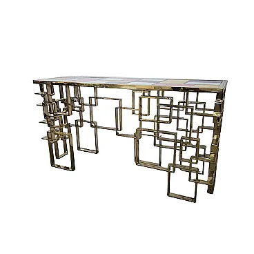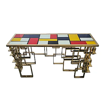 Consolle da centro in acciaio dorato e top in vetro di Murano, '900