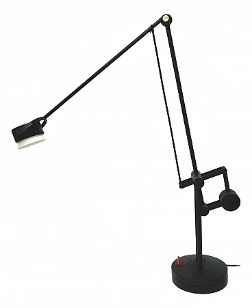 Lampada da tavolo modello "Valentina", design Jonathan De Pas, Donato D'Urbino e Paolo Lomazzi per Valenti, alogena a doppia intensità luminosa, girevole ed orientabile in qualsiasi posizione. Corpo e testina in tecnopolimeri in finitura trasparente. Altezza indicativa cm 80, regolabile. Condizioni molto buone, come da foto, perfettamente funzionante.