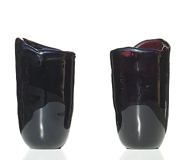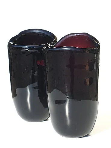 Coppia di vasi grandi in vetro di Murano viola di Seguso, anni '50