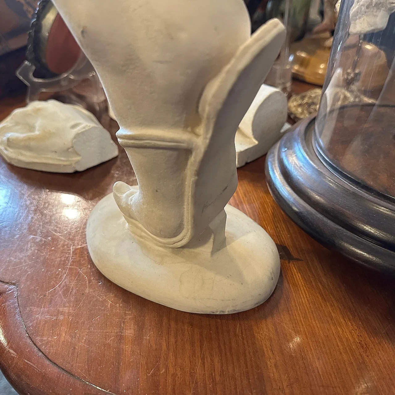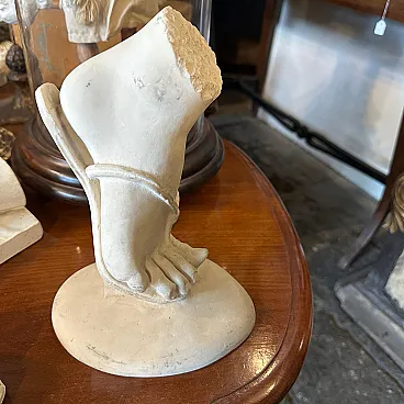 Si tratta di una scultura italiana in alabastro del XIX secolo che raffigura un piede che indossa un sandalo classico.