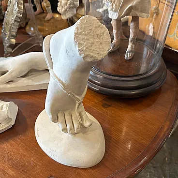 Il pezzo poggia su una semplice base ovale e la parte superiore della scultura è sbozzata, il che indica che potrebbe essere un frammento di una statua più grande o creato intenzionalmente come studio o frammento decorativo. L'artigianato mette in evidenza i delicati intagli tipici dell'alabastro, una pietra morbida spesso utilizzata per sculture dettagliate nel XIX secolo.
