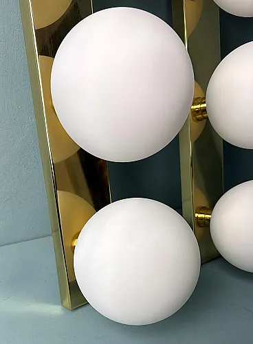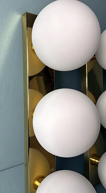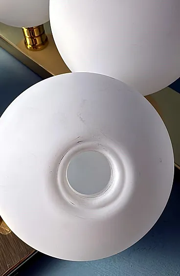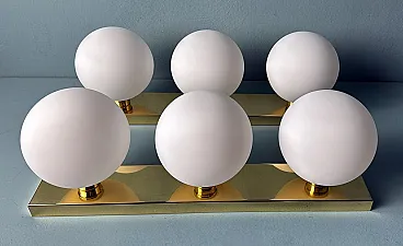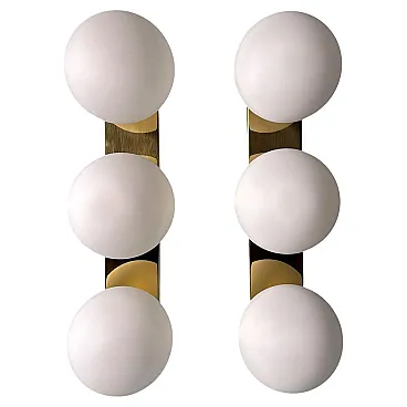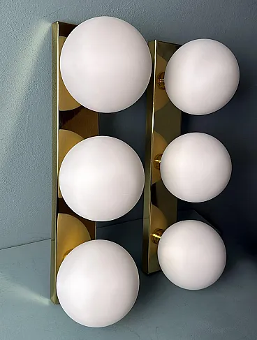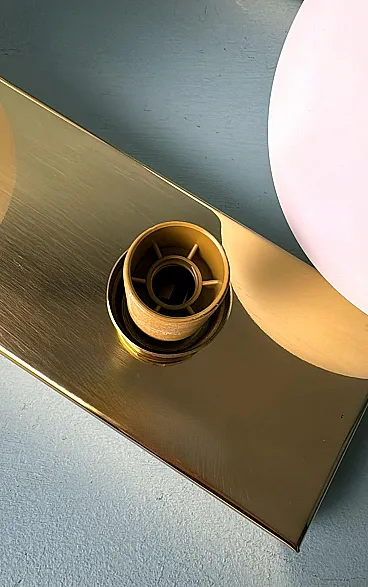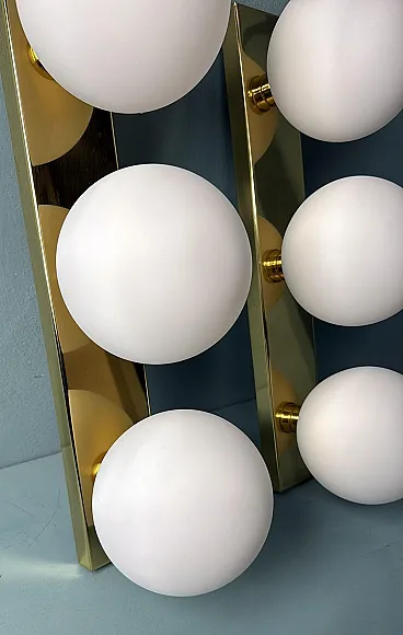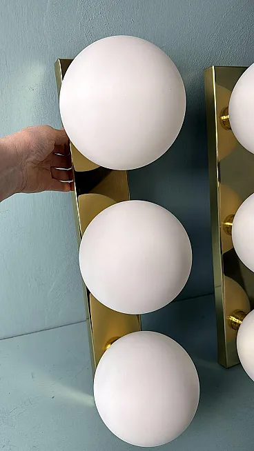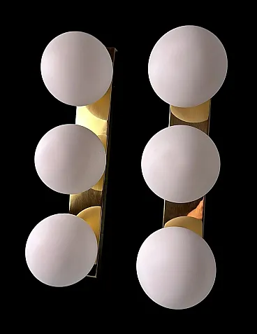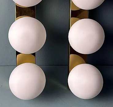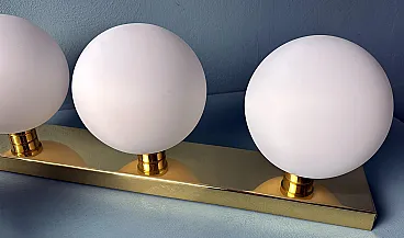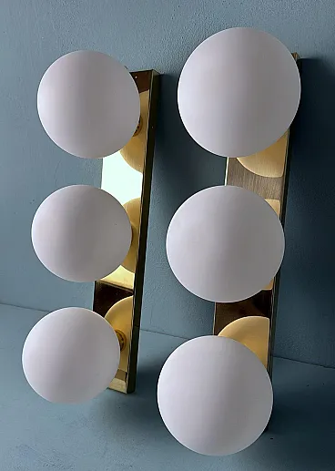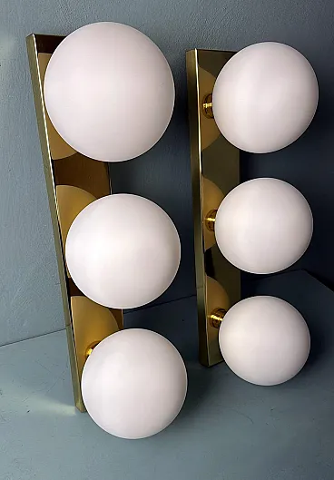Coppia di lampade da parete in ottone e vetro opalino, anni '80