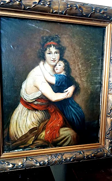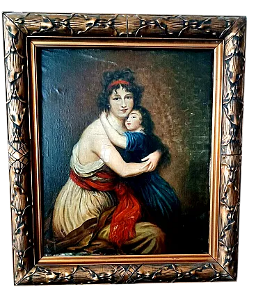Ritratto di famiglia, olio su tela con cornice coeva, '800