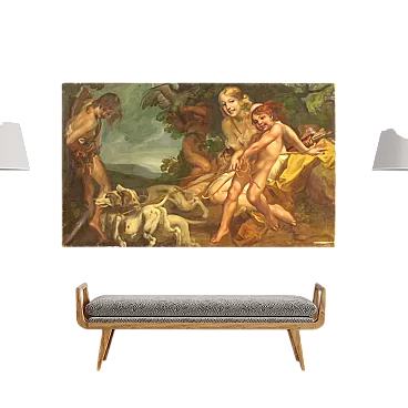 Dipinto italiano della prima metà del XX secolo. Opera olio su tela raffigurante soggetto mitologico Diana cacciatrice di ottima mano pittorica. Quadro di grande misura e impatto, di ottima luminosità e dinamicità, mancante di cornice. Dipinto non firmato riferibile a Mattia Traverso (1885-1956) mancante di autentica. Opera in prima tela che presenta diversi segni del tempo e piccole cadute di colore (vedi foto). Dipinto per antiquari, arredatori e collezionisti di pittura italiana del XX secolo. In discreto stato conservativo con alcuni segni del tempo.