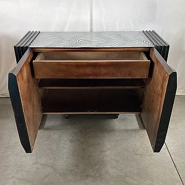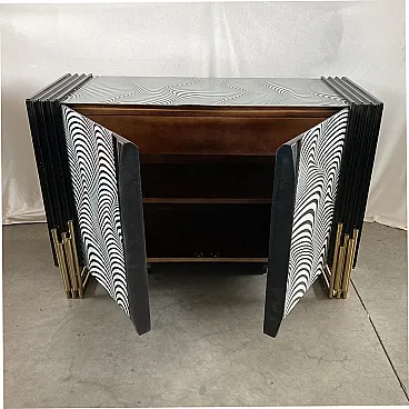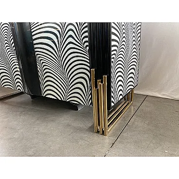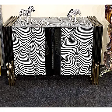 Credenza due ante con vetro a strisce d’onda bianche e nere, anni '90