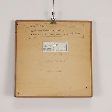Tecnica mista su tavola. Firmato e datato in basso a destra. Al retro ulteriore firma, data e titolo.